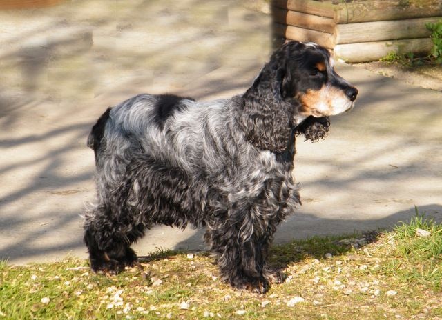 9 ans 1/2, DCC, présenté en exc condition, oreilles bien attachées, exc longueur, l'oeil est excellent, exc encolure, dessus, aplombs parfaits, exc angulations arr, épaule magnifique, exc mouvement.